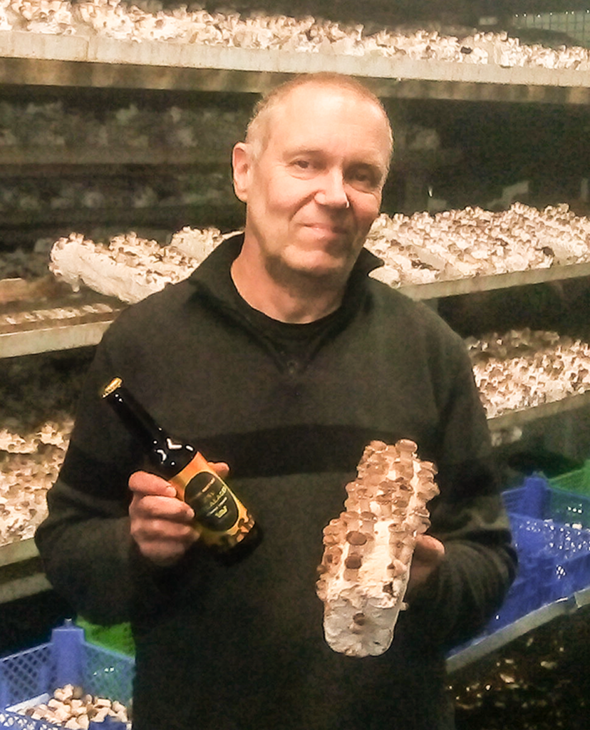 Tumma lager sopii hyvin oluen rungoksi, sillä sen paahteisuus ja maltaisuus saa upeaa täydennystä siitakkeen tuomasta umamista. Markulla on pitkä kokemus sienistä ja hänen kanssaan suunnittelimme, miten sienistä saadaan parhaiten maku irti oluen valmistuksessa. Päädyimme käyttämään sientä useassa vaiheessa prosessia, jotta saimme täyteläisen ja hienostuneen maun olueen.”