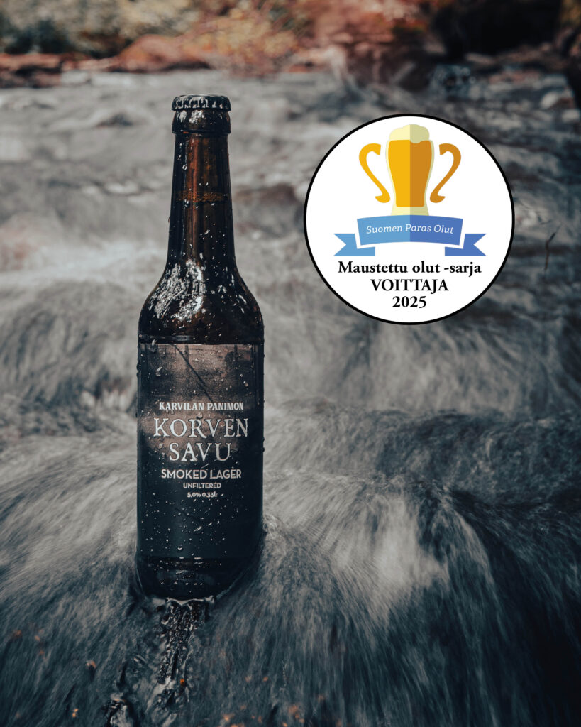 Karvilan Panimon Korven Savu Smoked Lager valittiin voittajaksi Suomen Paras Olut 2025 kilpailun Maustettu Olut -sarjassa.