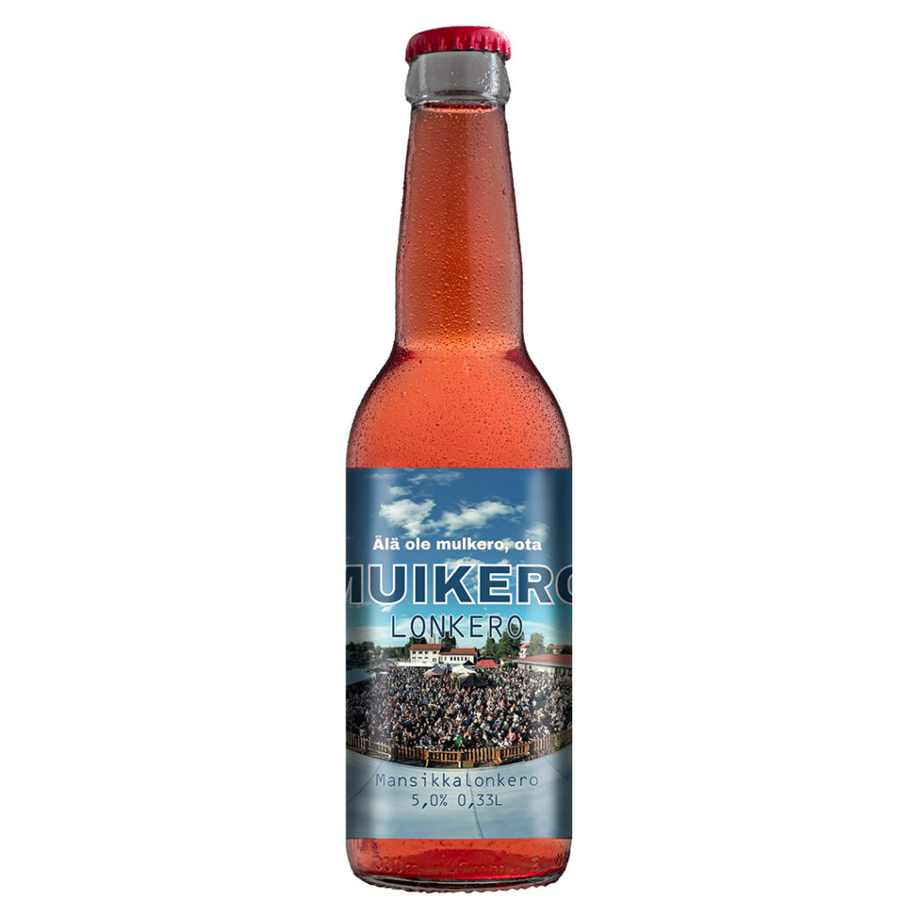 Lonkero, johon voit valita oman etiketin on Karvilan Panimon Mansikkalonkero.