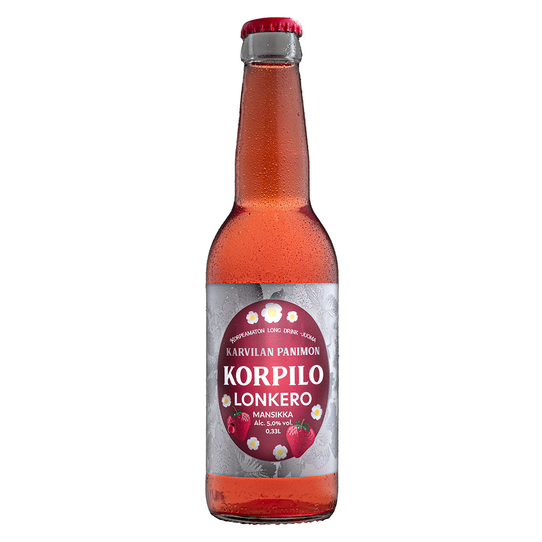 Syvältä Karvilan lähteestä sielunsa ammentanut – Suomen luonnosta arominsa kerännyt. Aidon mansikan makeus ja raikkaus takaavat korpeamattoman lonkeronautinnon. Nautitaan kylmänä joko jäillä tai sellaisenaan.