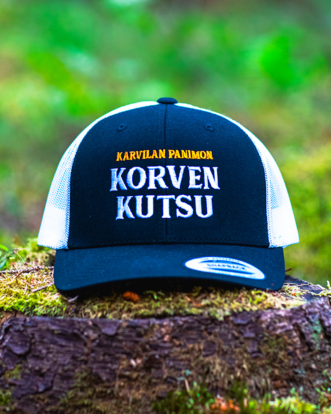 Huippulaadukas Yupoong ”Trucker”-mallin lippis Karvilan Panimon Korven Kutsu brodeerauksella.