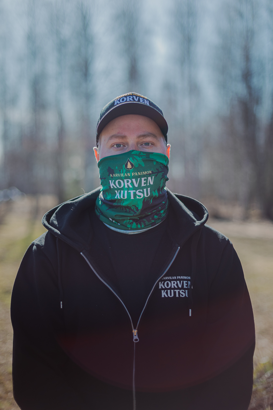Ainutlaatuinen Korven Kutsu ”all-over” kuviointi. Tuubihuivin koko on 35cm x 48,5 cm