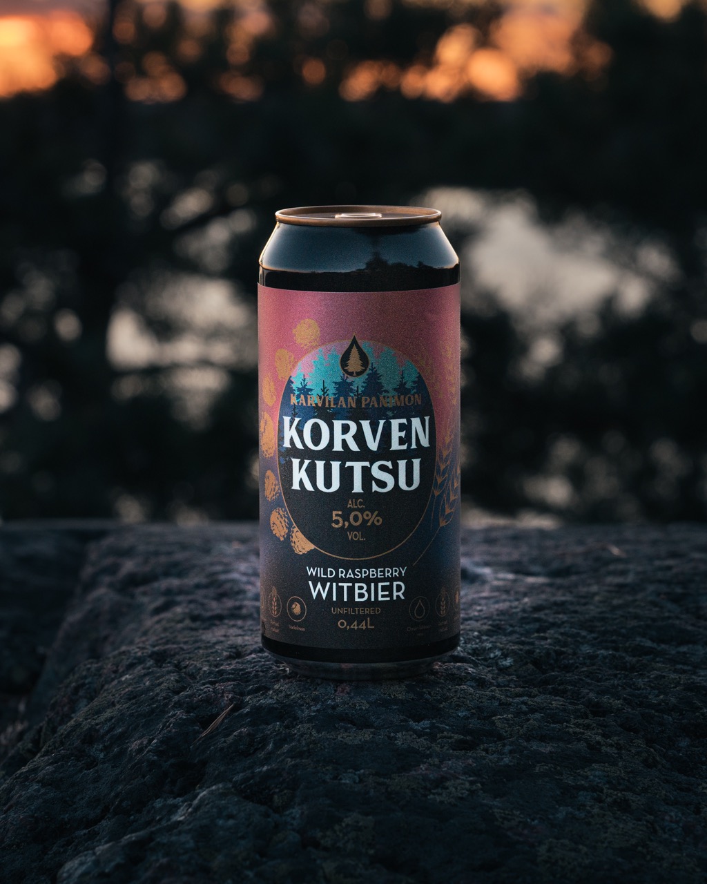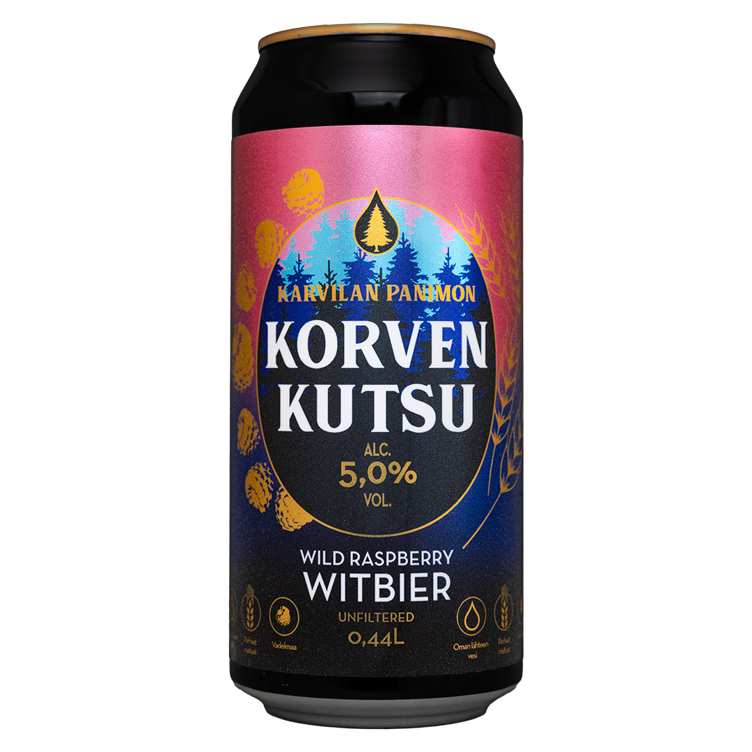 Korven Kutsu Wild Raspberry Witbier. Viekkaan viettelevä – silti maukas ja rehti belgityylinen vehnäolut. Sitrusmaisen raikas ja maistuva janonsammuttaja. Täydellinen pari grilliruokien kanssa. Maustettu aidolla korven vadelmalla, joka antaa makuun marjaisan raikkaan vivahteen.