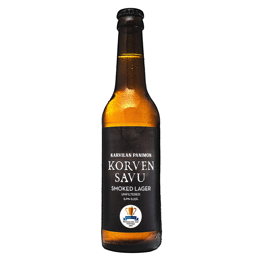 Nautittavaa ja pehmeän täyteläistä lageria luonnonläheisellä twistillä. Korven Savu on mainio olut oluen ystäville, jotka haluavat tutustua lempeästi maustettuihin lager-oluihin. Alc. 5,0% vol. Tilavuus 0,33l, 0,15€ panttipullo.
