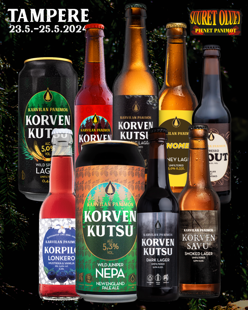 Tampereen kutsu – korpi kuuli sen! Olemme mukana Tampereen Suuret Oluet Pienet Panimot -olutfestivaaleilla Ratinanniemessä torstaista 23.5. lauantaihin 25.5.